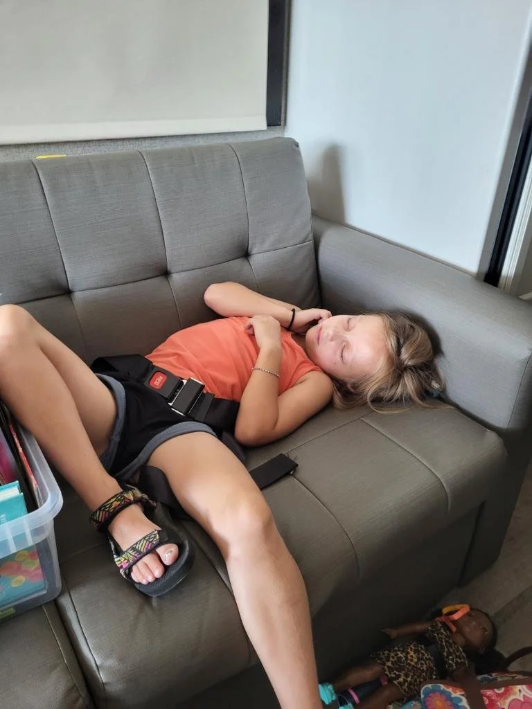 So far on our trip, we’ve been able to avoid any car sickness. Early on, Elias was close to getting sick, but we moved him to the front seat for awhile and we were able to avoid the mess. Today, our luck ran out. About an hour into our drive, Ilena got sick. Just as we had to pull off the side of a rural highway in Wyoming to clean grease off the floor, we pulled over on the side of a rural Texas highway to clean up another mess (puke). When you’re on the road for so long, something like this is bound to happen.
